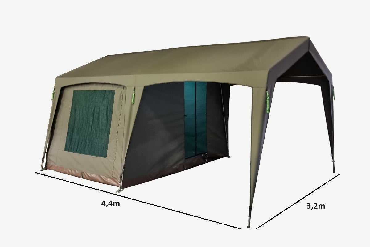 The FVELDT Camper is a 3 person, Single Room Frame Tent with a veranda.